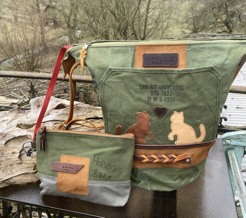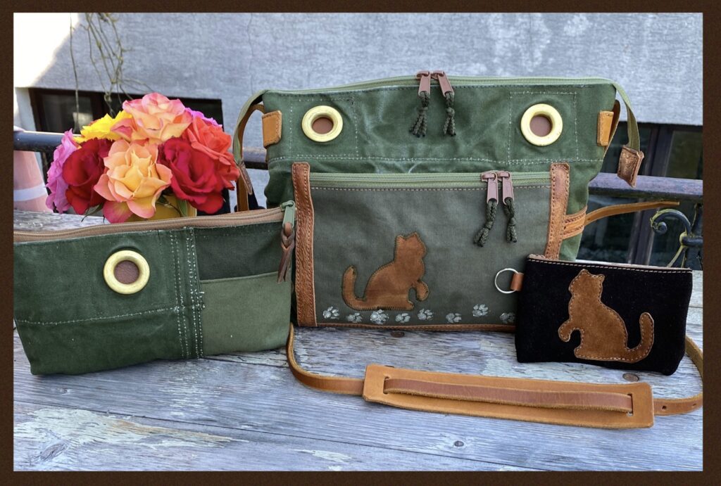 Soeben ist wieder eine Tasche mit einer Katze fertig geworden. Warum wieder? Weil ich eine Ă€hnliche – ganz entfernt – schon einmal genĂ€ht habe. Diese Tasche ist fĂŒr Lucia und hat ein kleineres Format (ca. B: 36cm x H: 25cm) als sonst. Und da ich dadurch vorne kein Chichi applizieren konnte, habe ich fĂŒr Lucia noch ein kleines LedertĂ€schchen zu dem eigentlichen KrimskramstĂ€schchen genĂ€ht. Auch mit Katze. Wie immer habe ich dabei möglichst viele alte, kaputte und/oder ungeliebte Dinge verwendet: