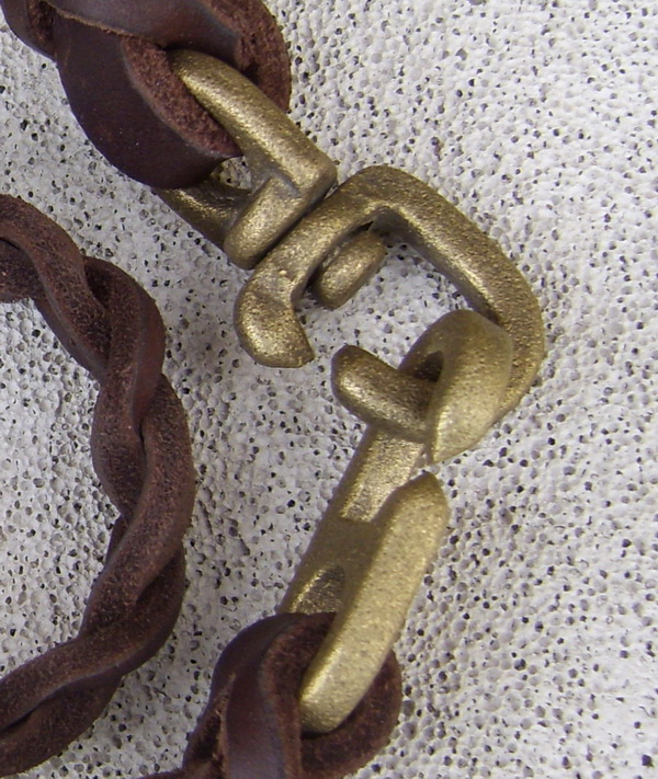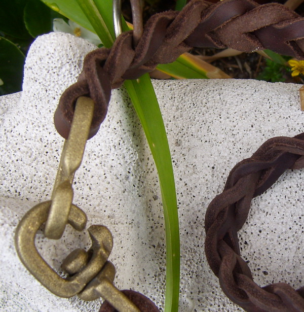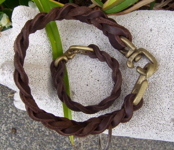 Der Name an sich ist doch schon irgendwie wunderbar, findet ihr nicht? Und da diese Haken zudem noch sehr praktisch sind, habe ich sie in Halsbändern und Armbändern als Verschluß verarbeitet. Bei diesem Beispiel hier habe ich braunes Fettleder verwendet – für das Halsband eine Lederbreite von 14mm, der Haken ist insgesamt 88mm, das komplette Band 40cm lang und eignet sich für einen Halsumfang von ca. 34cm. Beim Armband ist die Lederbreite 8mm und der Brummelhaken 56mm und die Gesamtlänge 22cm (Handgelenkumfang sollte etwa 17cm – 18cm sein):