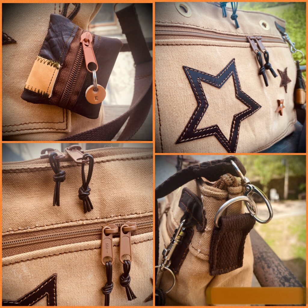 Für die liebe Ursel ist gerade diese Tasche und ein Halsband fertig geworden. Und NATÜRLICH habe ich WIE IMMER weitgehendst alte, kaputte und/oder ungeliebte Sachen verwendet. Die Tasche hat ein Format von ca. 28cm x 32cm.