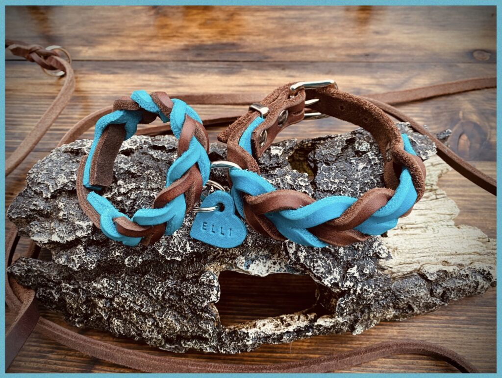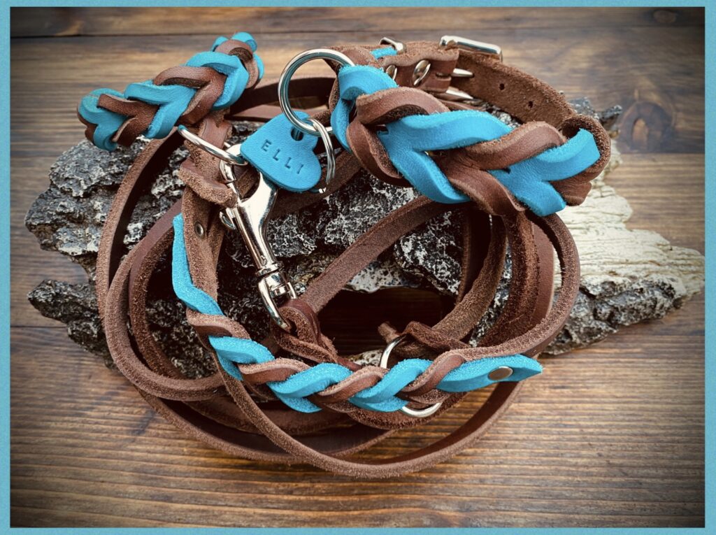 Für Alex‘ Elli ist jetzt zu der Leine noch ein passendes Halsband dazu gekommen und☝️ein ebenfalls zum Halsband und Leine passendes Armband für’s Frauchen. Alles in braun mit türkis.