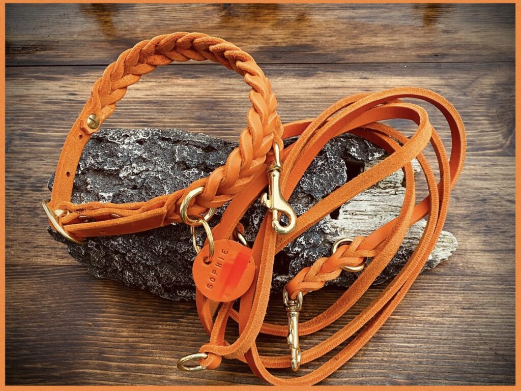 AmStaff Sophie von Susa wird zukünftig in orange glänzen. Mit güldenen Messingbeschlägen. Jaaaaa, wer kann der kann.