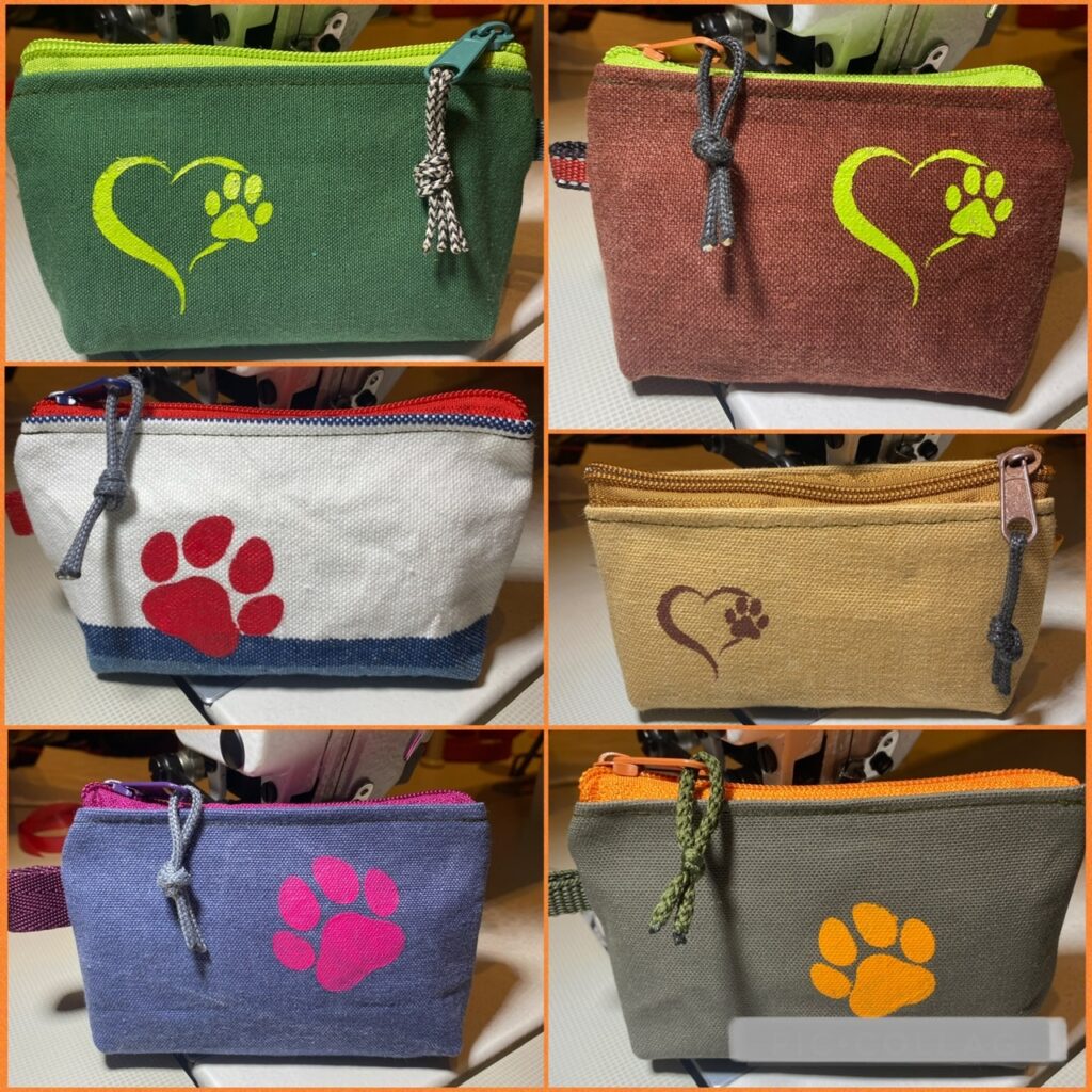 Gestern ist die „Gassi-Geh-Tasche“ für tintebollrath und ihrem Balou fertig geworden. Diesmal im Hochformat 18cm x 22cm. Den alten Postsack habe ich mit einer Pfotenspur 🐾 (Textilfarbe) versehen und für die bessere Sichtbarkeit ein Reflektorband aufgenäht. Der kleine Tetreaderanhänger ist aus dem Leder einer ausrangierten Jacke und für die schlichte Innenabtrennung habe ich den Stoff eines alten Küchenvorhangs genommen.