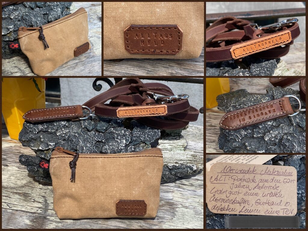 Dieser gedackelte Stoff ist wirklich sehr beliebt. Es sind schon wieder zwei Täschchen entstanden: eine kleine Krimskramstasche und eine etwas größere Karabinertasche. Blöd nur, dass der Stoff eine ehemalige Küchenschürze und diese leider nicht unendlich groß war. Ich heule dem Ende des Stoffes jetzt schon entgegen. Aber: ich freue mich jedesmal über die fertigen süßen gedackelten Taschen. Und ich glaube, Miriam, die neue Besitzerin auch.