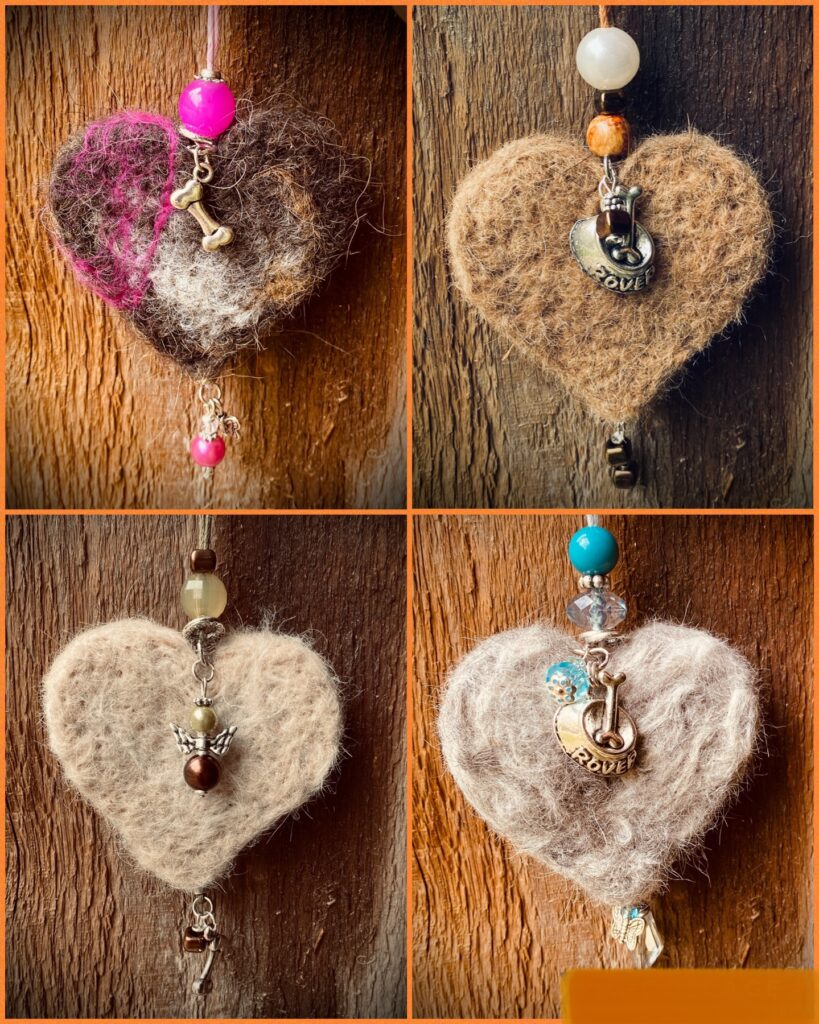 Ich durfte wieder für einige Hundebesitzer die Haare ihrer Hunde zu kleinen Herzen filzen.