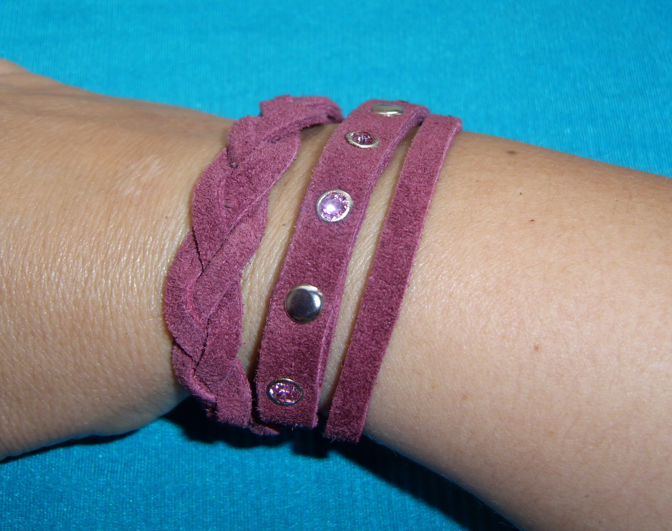 … in Wirklichkeit ist es ein Lederstrang, der in unterschiedliche Designs aufgeteilt ist und zweimal (zumindest in diesem Beispiel) um das Handgelenk paßt: